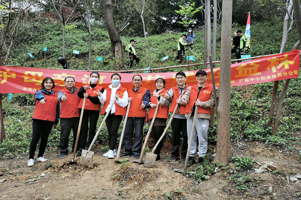 中小擔保本部廣大黨員、團員在黨支部書記、董事長邱宗躍的帶領下,前往良鳳江森林公園,開展“紅色傳承 綠色希望”植樹活動。大家三五成組,有的揮鏟挖坑、有的扶苗栽樹,熱火朝天地踐行“綠水青山就是金山銀山”的環(huán)保理念。