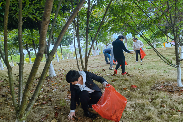 賀州分公司組織到賀州市愛蓮湖公園清理垃圾。
