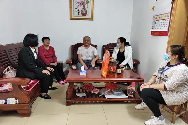 梧州分公司黨員干部與社區(qū)工作人員一道入戶慰問失獨家庭、病殘老人、困難群眾,并送上油米等慰問品。